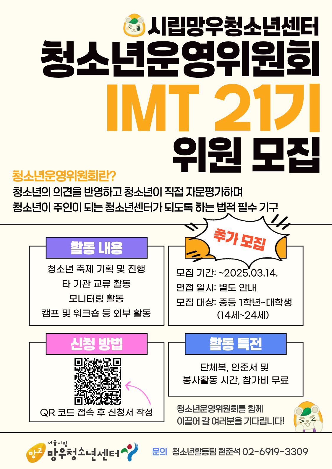 - 채용[재공고] 서울시립망우청소년센터 아기스포츠단 차량 도우미 채용26.03.09