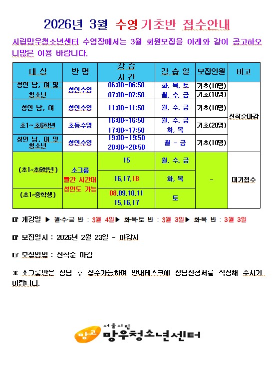 [모집] 2026년 3월 수영 기초반 접수안내(수정)