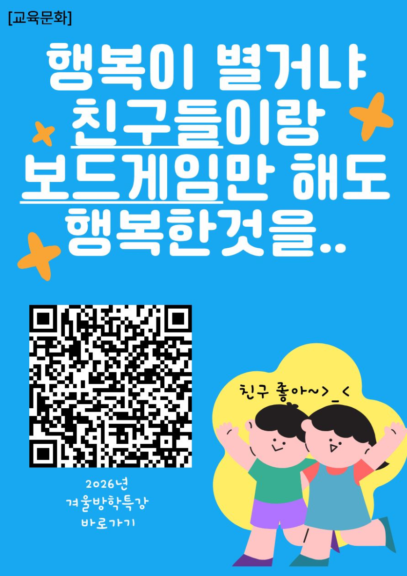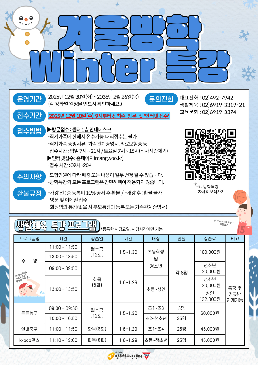 [체육·문화] ★2026년 겨울방학특강안내(패키지, 생활체육, 교육문화)★