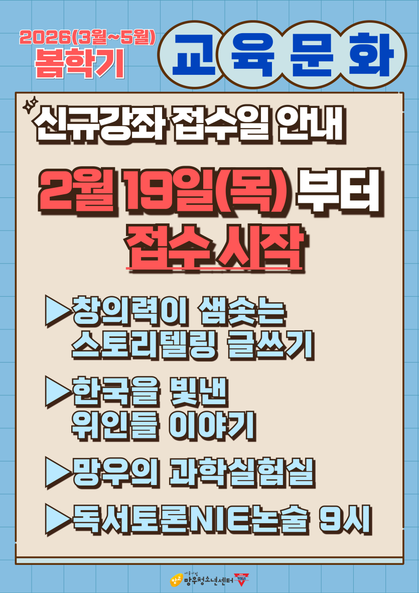 작성자 시립망우청소년센터 댓글 0건 조회 321회 작성일 2026-01-16