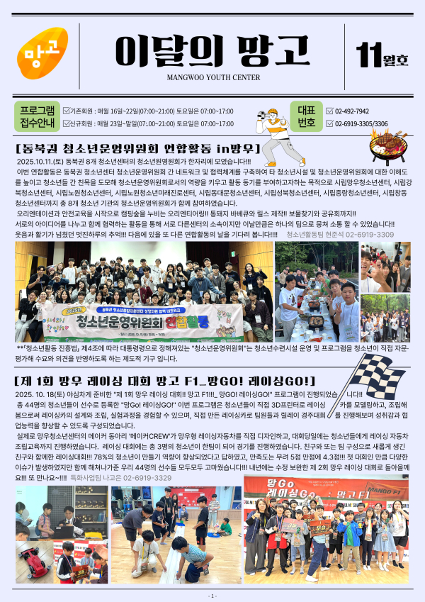 목록 2025년 '이달의 망고' 11월호 발간 페이지 정보 작성자 mangwoo 댓글 0건 조회 203회 작성일 25-11-05 17:56 본문 . 이전글2025년 '이달의 망고' 12월호 발간 25.12.17 다음글2025 겨울학기(12월~2월) 프로그램지(PDF참고) 25.11.04 댓글 0 댓글목록 등록된 댓글이 없습니다. 목록