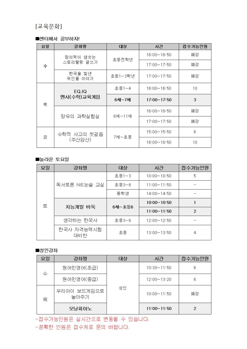 [체육·문화] [교육문화]봄학기(3월~5월) 접수현황 수정(3월 5일 오전 기준)